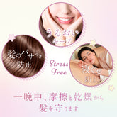 人は1晩に寝返りを20~30回打つと言われています。その際、髪同士が擦れ合い、切れ毛や枝毛の原因となります。シルクナイトキャップを着用することで、髪の絡まりを防ぎ、ヘアケアと頭皮ケアを手軽に実現。さらに、髪質改善の効果も期待できます。